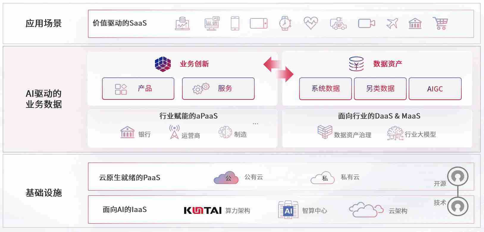 数字时代,,,,围绕企业数字化转型的关键要素,,人生就是搏数码开创性的提出数云融合战略和技术体系框架,,,,着力在云原生、、数字原生、、、、AI原生和信创产业上架构产品和服务能力,,,为处在不同数字化转型阶段的快消零售、、、汽车、、金融、、、、医疗、、政企、、、、教育、、、运营商等行业客户提供泛在的敏捷IT能力和融合的数据驱动能力,,,,构建跨界融合创新的数字业务场景和新业务模式,,,,助力企业级客户建立面向未来的核心能力和竞争优势,,全面推动社会的数字化、、智能化转型升级。。